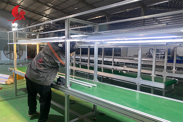 Với ưu điểm nhẹ, dễ lắp ráp và tính linh hoạt cao, băng tải nhôm định hình thường được ứng dụng trong các dây chuyền lắp ráp điện tử hoặc kho vận hiện đại.
