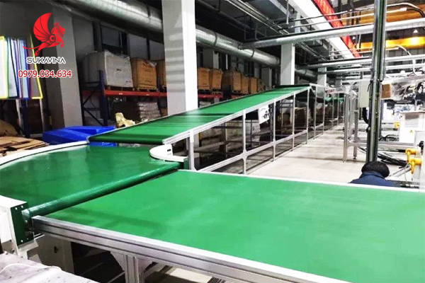 - Tiết kiệm không gian: Băng tải vuông góc giúp tận dụng tối đa diện tích làm việc, đặc biệt là trong những môi trường có không gian hạn chế.